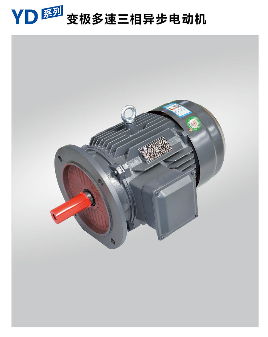 YD系列變極多速三相異步電動機是Y2系列三相異步電動機的電氣派生產(chǎn)品,本系列的外形及安裝尺寸、絕緣等級、冷卻方式均與YE2系列相同,安裝尺寸完全符合國際IEC標(biāo)準(zhǔn),功率等級、起動性能與力能指標(biāo)均與國際同類變極多速電動機的先進水平相近。